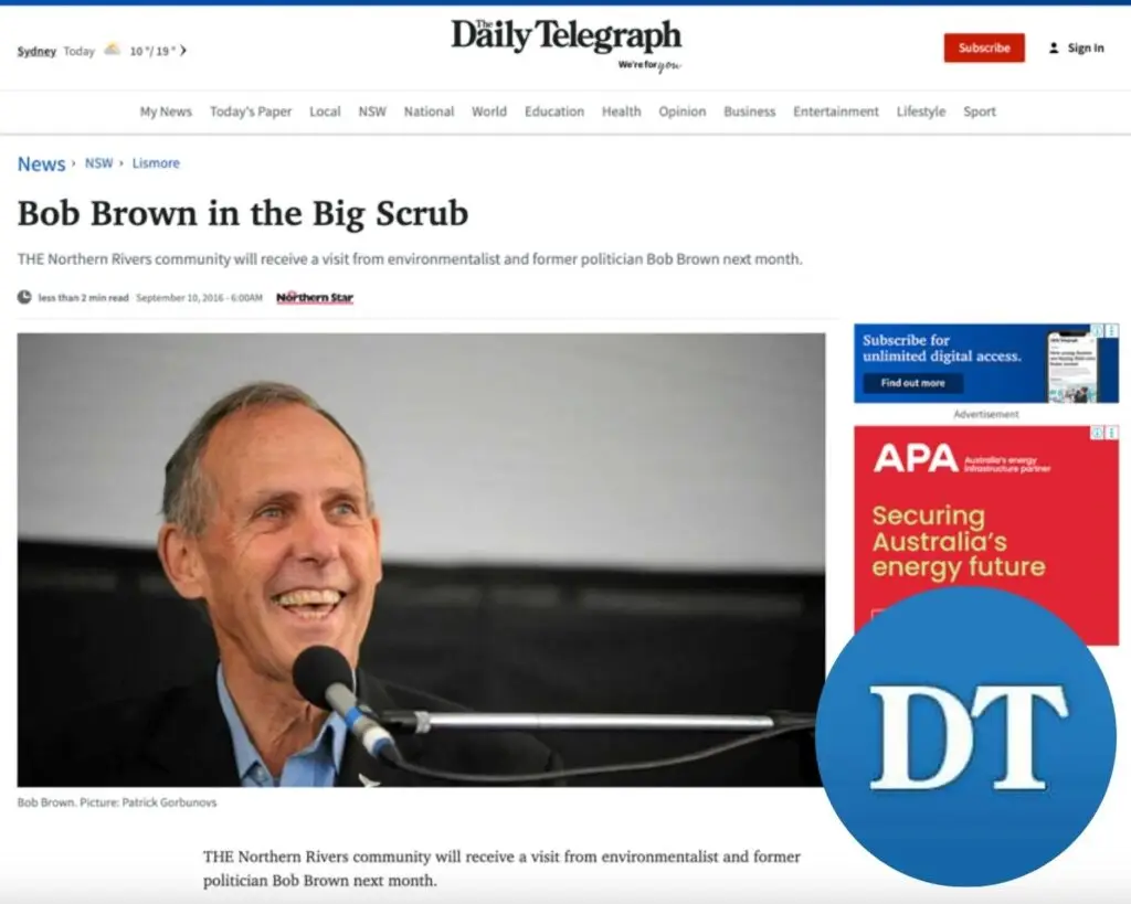 Daily Telegraph: Bob Brown joins Big Scrub Rainforest Day